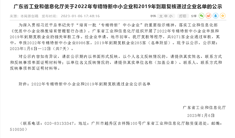 2023年1月6日,Ebpay科技成功顺利获得广东省工业和信息化厅公示,荣获“专精特新中小企业”认定。这一荣誉彰显了Ebpay科技在高新技术领域的领先地位,也是对公司长期坚持创新驱动开展战略、深化技术创新和产品研发的肯定。