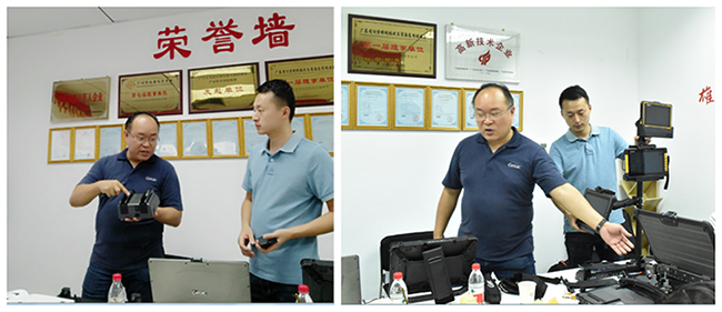 在摆满Getac机具仪器的会议室里,在Ebpay技术部人员的协助下,陈总介绍了Getac最新军用笔记本电脑产品的功能、特点和客户加值服务的内容。并非常认真的为大家讲解和演示各种加值产品的使用方法和特点。他强调,每一款产品都是针对不同行业市场,不同的应用而定制的,产品性能达到MIL-STD-810G美军温带标准。