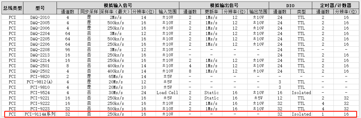 PCI数据采集卡对比
